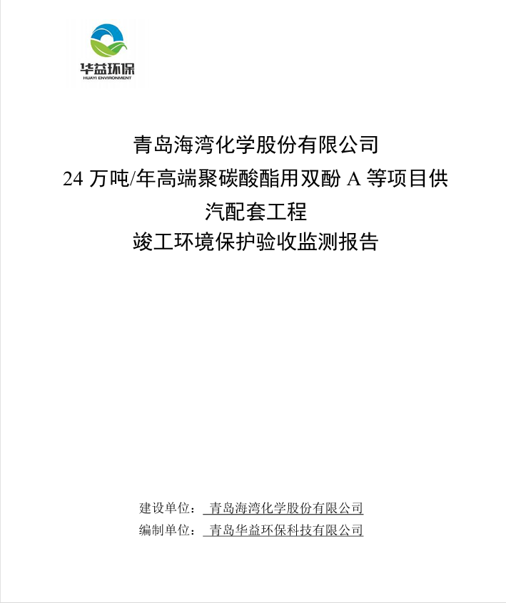 24萬噸高端聚碳(tàn)酸酯用雙酚A等項(xiang)目配套供汽工程(chéng)項目竣工環保驗(yàn)收監測報告 -公示(shi)版